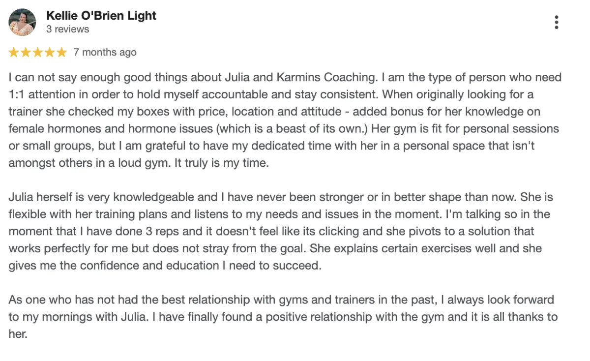 That realization became the foundation of the Kamins Coaching Transformation Program. This comprehensive approach combines private training, nutrition coaching, and accountability — giving you the structure, strategies, and support you need to finally achieve fat loss that lasts, build strength, and feel confident in your body.